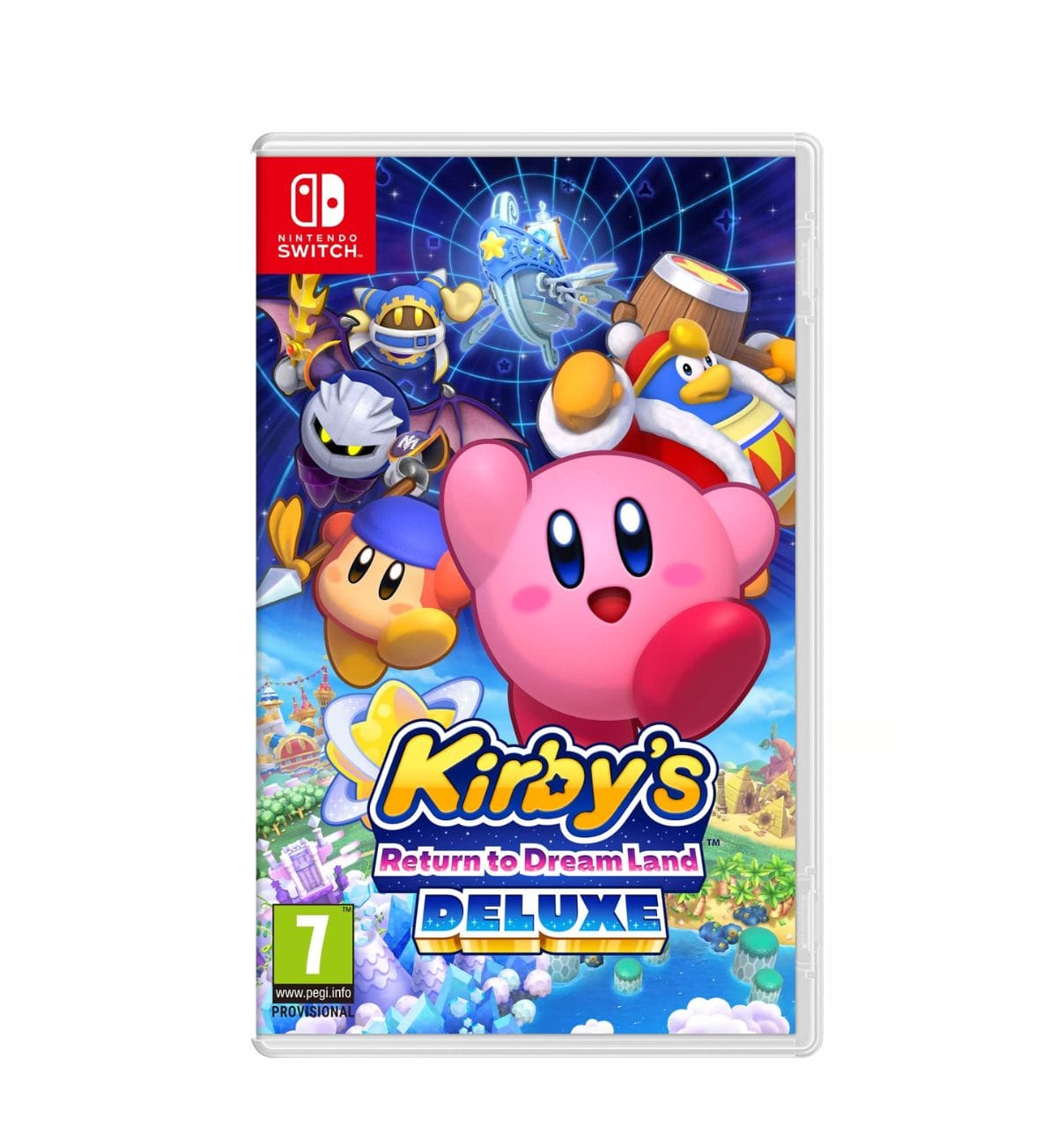 Kirby’s Return to Dream Land Deluxe para Nintendo Switch es una renovada versión del juego de plataformas 2D aparecido originalmente en Wii. Nintendo ha llevado a cabo una renovación gráfica, añadiendo contenidos inéditos como una historia adicional: La Aventura de Maglor. Aparte, se incluyen nuevas habilidades para Kirby y minijuegos que no estaban en el lanzamiento original.